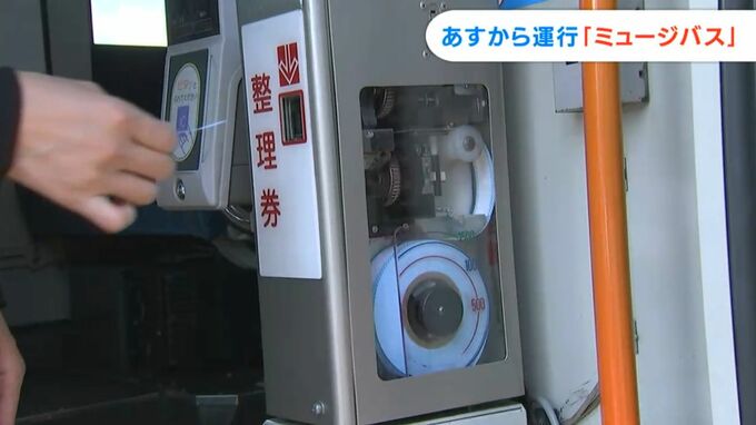 (杉澤眞優キャスターリポート)「こちらのバス、整理券器が透明になっていて、中の仕組みや構造が分かるようになっています」