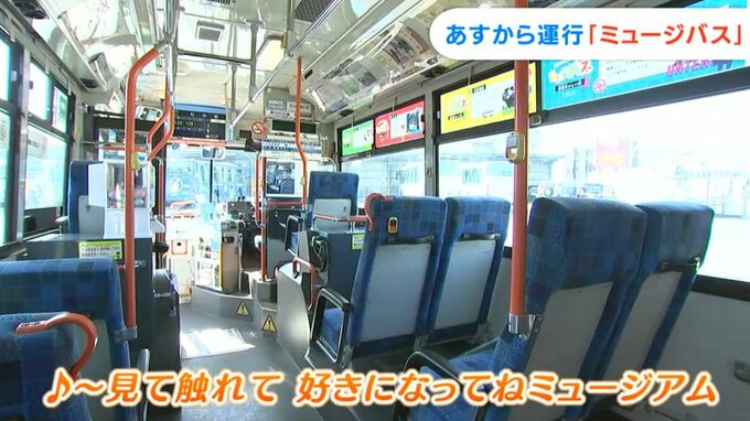 路線バスの利用促進をと数々のユニークなバスを企画・運行している両備グループですが、また新たな車両があす(13日)から運行されます。今回は、触れて学べる、まるで博物館=ミュージアムのようなバス。その名も「ミュージバス」です。