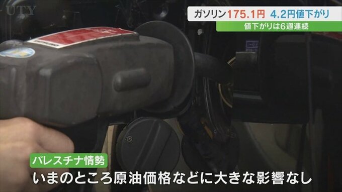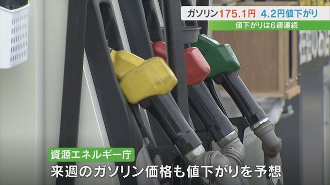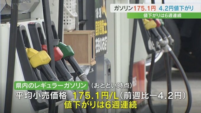 資源エネルギー庁によりますと、10日時点の県内のレギュラーガソリンの平均小売価格は1Lあたり175.1円で、今月2日と比べて4.2円値下がりしました。
