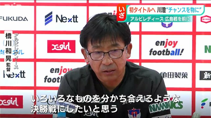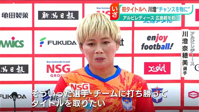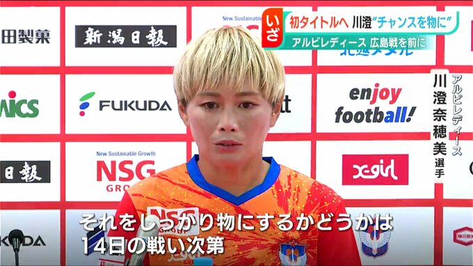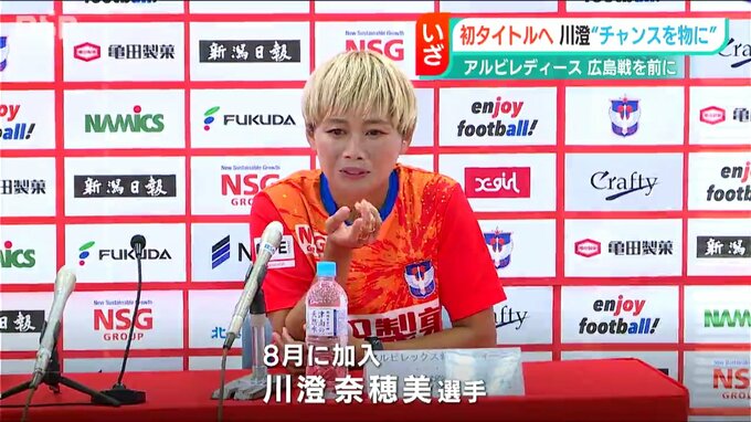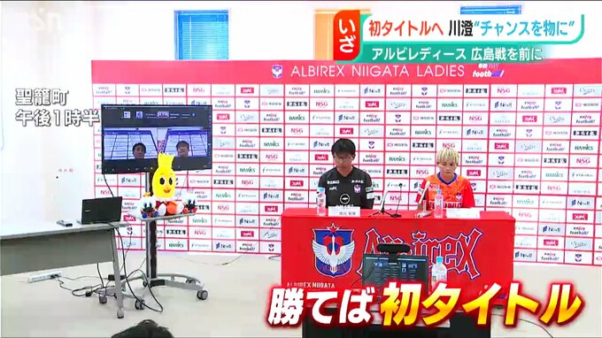カップ戦の決勝に駒を進め、初のタイトルに王手をかけたサッカー・アルビレディース。決勝で相まみえる新潟、広島の選手が12日、共同会見を開き、8月に加入した川澄 選手が意気込みを語りました。