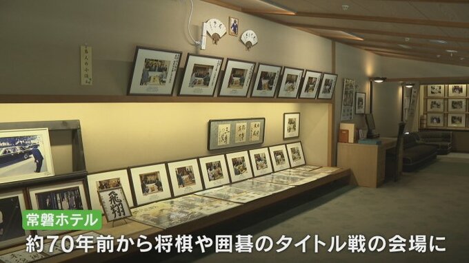 このホテルは約70年前から将棋や囲碁のタイトル戦の会場になっていて、館内にはこれまでに行われた対局の写真などが展示されています。