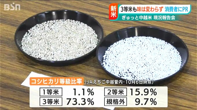 猛暑の影響によるコメの等級低下で、味を心配する消費者からの声が多く寄せられていますが、等級に関わらず「味は変わらずにおいしい」ことを知ってもらおうと、12日に「JAえちご中越」が、今年のコメの特徴や味に関する『ぎゅっと中越米 現況報告会』を長岡市で開催し、消費団体や流通関係者らが参加しました。