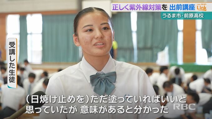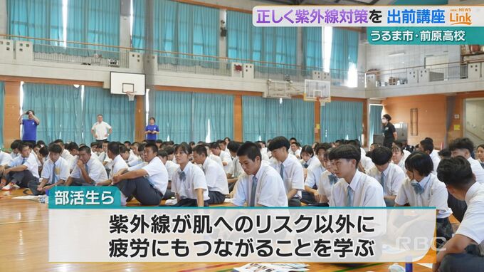 前原高校で開かれた『紫外線対策講座』は屋外での活動時間が長い運動部の生徒らを対象におこなわれ、生徒らは紫外線による肌へのリスクだけでなく疲労につながることを学びました。