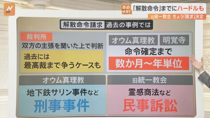大きく違うのは、オウム真理教は“刑事事件”。一方で、旧統一教会は“民事訴訟”ということ。司法では、しっかりと感情的にならず判断していく必要があるので、年単位かかることになります。