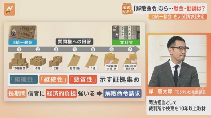 旧統一教会側が、命令が出されると思っているかどうかもわからないです。もしかしたら法律上、解散命令が出ないと教団側は考えている可能性もあるので、今、解散請求が出たから教団がどう動くかは、正直わからないところです。