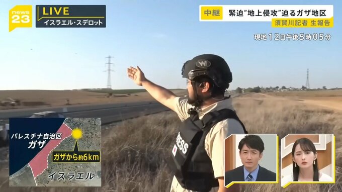 私が今いるところは、まさにガザから5、6キロ離れた場所なんですが、地上侵攻への緊張が高まっているかと言われると、「イエス」そして「ノー」なんですね。