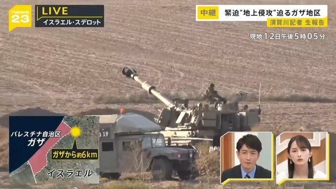 どういうことかといいますと、私の隣にあるこの榴弾砲。これは今日この現場に到着したんですが、今日、一日中、断続的にガザに向かって砲撃を続けているんです。