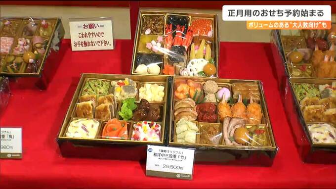 仙台市内の百貨店では、13日から、正月用のおせちの予約が始まりました。新型コロナ5類移行後、初めての正月で、気兼ねなく大人数で集まれるとして、ボリュームのあるおせちなどが揃っています。