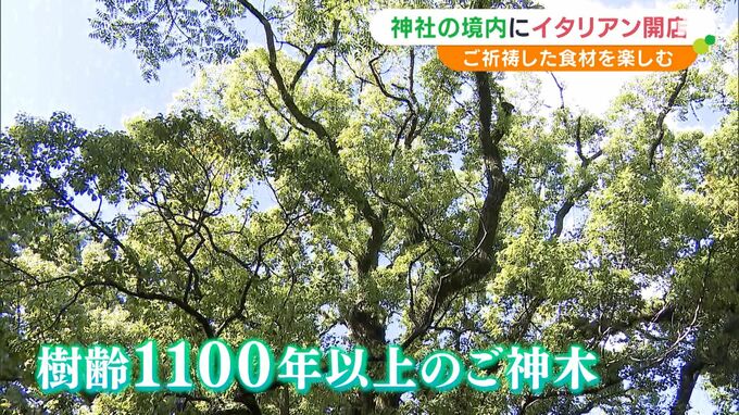 注目すべきは料理だけではありません。本殿の横には樹齢1100年を越える御神木が構えています。