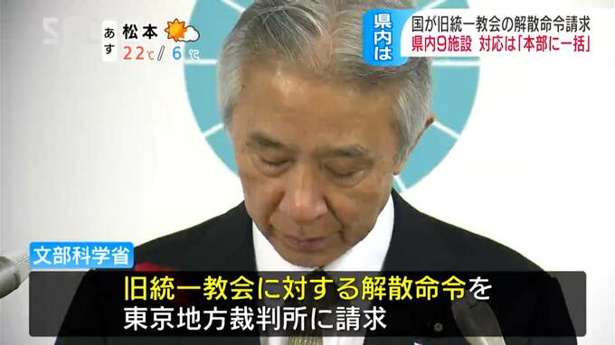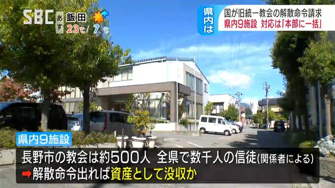 教団の施設は県内に9か所あり、長野市の教会にはおよそ500人、全県では数千人の信徒がいるということで、解散命令が出た場合は、教団の施設なども資産として没収の対象になるとみられます。