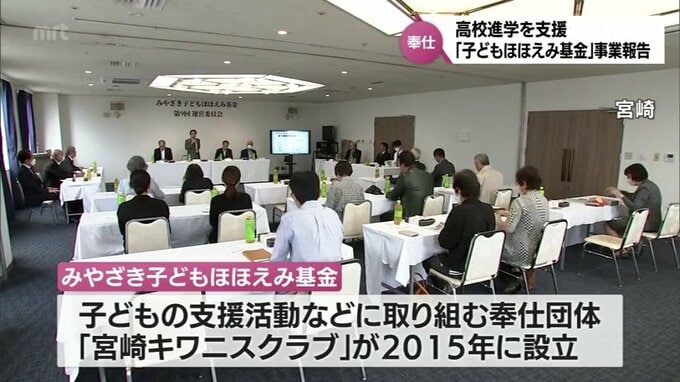 困窮家庭の子どもに高校進学のための支援金を給付する「みやざき子どもほほえみ基金」の事業報告会が宮崎市で開かれました。「みやざき子どもほほえみ基金」は、子どもの支援活動などに取り組む奉仕団体「宮崎キワ…