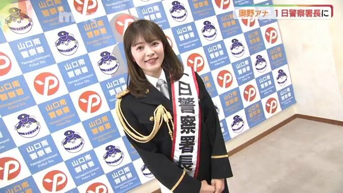 山口南警察署の署長室で委嘱状が手渡されました。奥野粋子 一日警察署長の最初の仕事は…署長として、逮捕術を磨く訓練に励む署員の激励です。犯罪者を逮捕することももちろん大事ですが、犯罪を防ぐことももちろ…