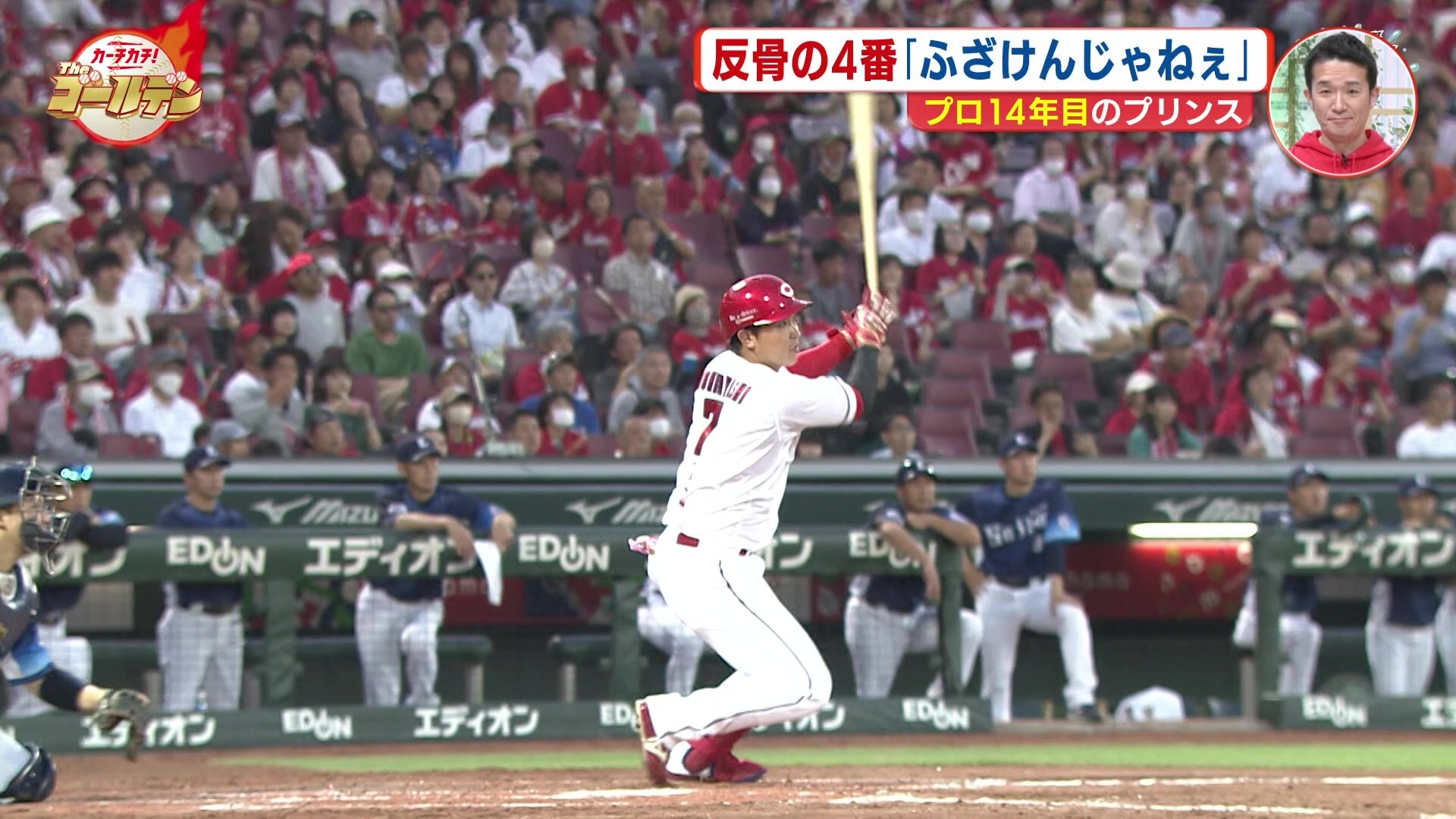 「緩いカーブを打ちました。大きな当たりだ。レフトに打球は伸びて、カープの4番の反撃の号砲!」