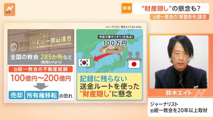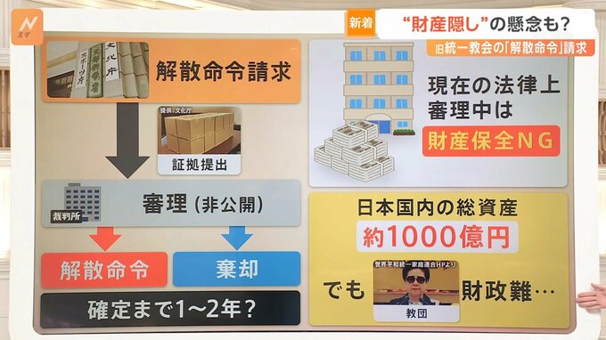 ただ、現在の法律上、審理の間は財産の保全ができないということになりますので、財産を移したり売却するという可能性もあるわけです。鈴木エイトさんの取材によりますと、日本国内の総資産というのはおよそ1000億円。ただ、教団は韓国側ですけれども財政難に陥っているということで、こういった状況にどのような影響が考えられるでしょうか?