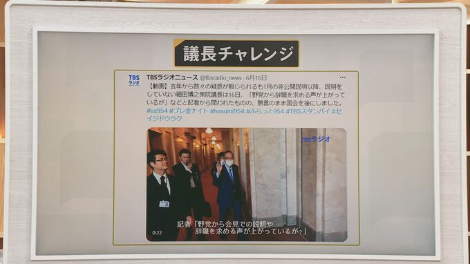 そんな状況で、TBSラジオの澤田記者がどうしても議長に話を聞きたいということで始めたのが“議長チャレンジ”というものです。もう50回以上、機会をとらえて議長に話しかけ続けました。SNSでも公開してきたんですけれども、その様子をぜひご覧ください。