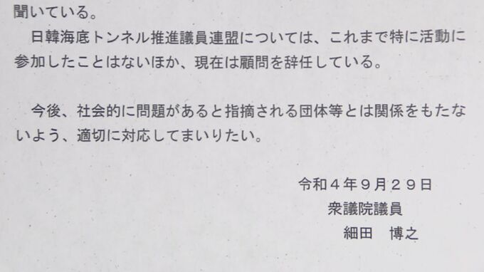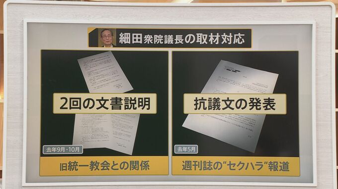 そもそも細田議長は、旧統一教会の問題に関してこれまでどう説明してきたかというと、していないんですね。紙の文書を2回出しました。これだけ。