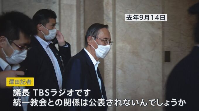 「議長、TBSラジオです。統一教会との関係は公表されないんでしょうか。公表されないんですか、議長」