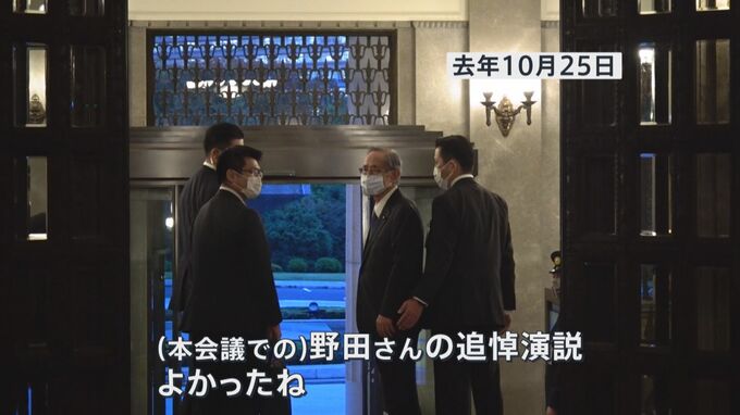 「(本会議での)野田さんの追悼演説、よかったね」