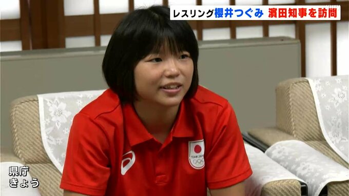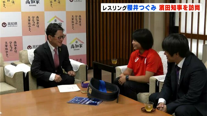 2024年のパリオリンピック代表に内定した、レスリングの櫻井つぐみ選手(高知・香南市出身)が、14日、高知への帰省に合わせて濵田省司知事を訪問しました。