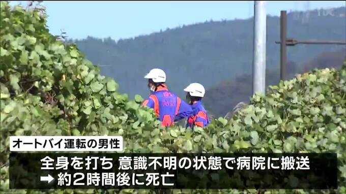 この事故でオートバイを運転していた男性が全身を打ち、意識不明の状態で病院に運ばれましたが、およそ2時間後に死亡が確認されました。