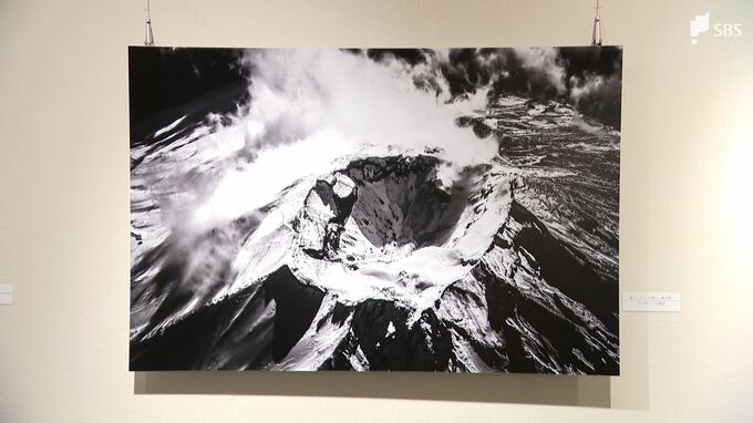 富士山の火口を写したモノクロ作品は、飛行機をチャーターして、上空から撮影されました。