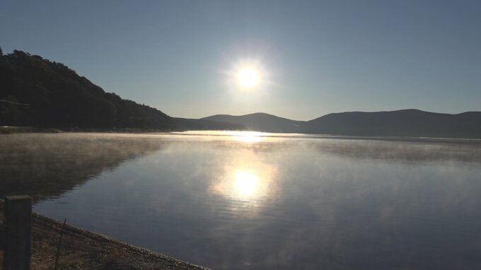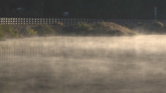 また4.9度と冷え込んだ山中湖では気温と水温の差が大きい時に湯気のようなものが現れる気嵐(けあらし)という現象が見られました。