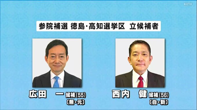 テレビ高知は14日、15日の2日間、共同通信社などと合同で参議院補欠選挙の電話情勢調査を実施しました。独自の取材を加味した選挙戦中盤の情勢は広田氏が優勢で、西内氏が追う展開となっています。参議院徳島高知…