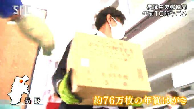 長野市の長野中央郵便局には、およそ76万枚の年賀はがきが入った段ボールが運び込まれました。