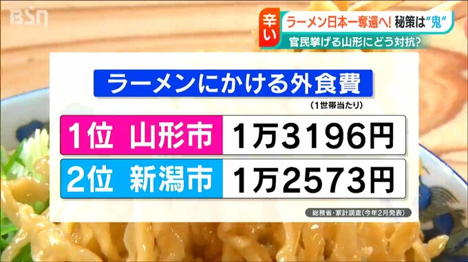 今年2月、「ラーメンにかける外食費」で首位を奪還した山形市。