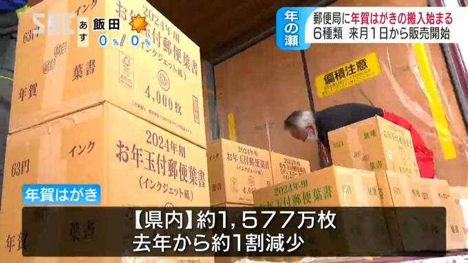 長野県内の郵便局には、早くも、2024年の年賀はがきの搬入が始まりました。