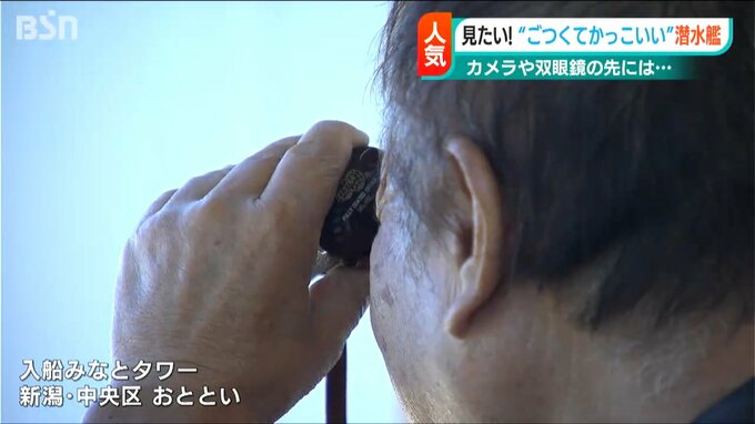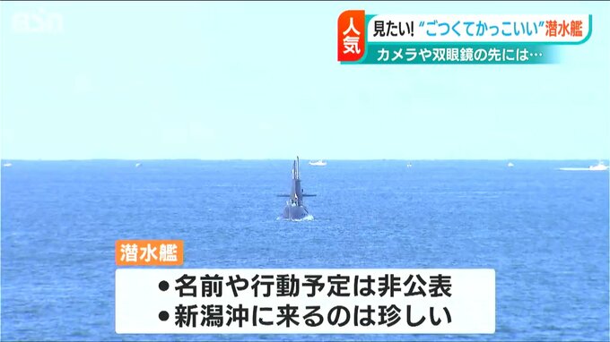 潜水艦の名前や行動予定は明らかにできないとしていますが、潜水艦が新潟沖に来るのは珍しいということで、14日は多くの人が入船みなとタワーから見学していました。