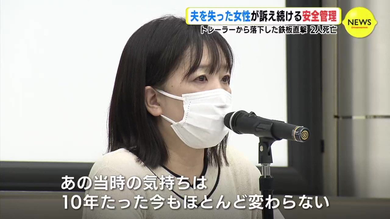 10年前、走行中のトレーラーから落下した鉄板が乗用車に直撃し、2人が亡くなりました。夫を失った女性が、車を使う事業者に安全管理の大切さを訴えました。