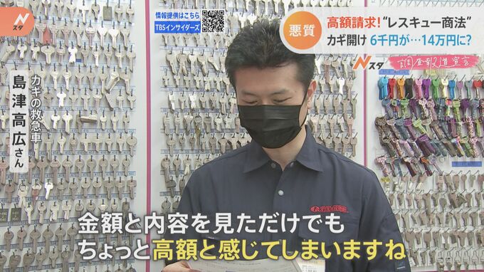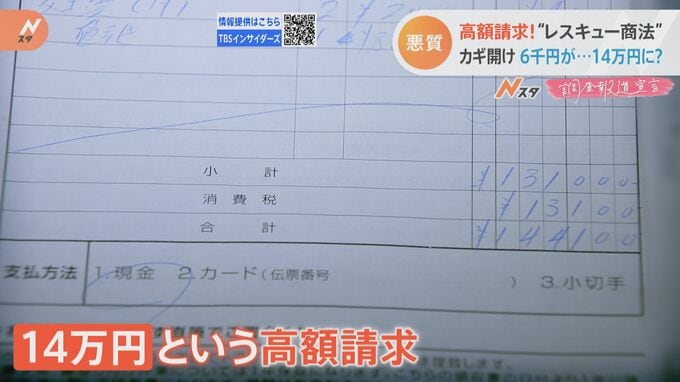 業者が請求した14万円という金額は、妥当なのか。そこで取材班は試しに他の業者に見積りを依頼することに。まずは、全国に90以上の店舗を展開し、日本ロックセキュリティ協同組合に加盟する「カギの救急車」。