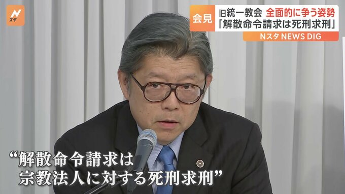 先週、文部科学省が行った「解散命令請求」を受け、旧統一教会がきょう会見を行い、全面的に争う姿勢を示しました。東京・渋谷区の教団本部。旧統一教会が会見を行いました。旧統一教会 岡村信男法務局長「非常に…
