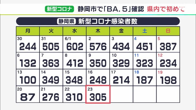 6月23日、静岡県内で新たに305人が新型コロナウイルスに感染したと発表され、32日ぶりに前の週の同じ曜日を上回りました。静岡市では、オミクロン株の派生型「BA.5」の感染者が県内で初めて確認されました。新たな…
