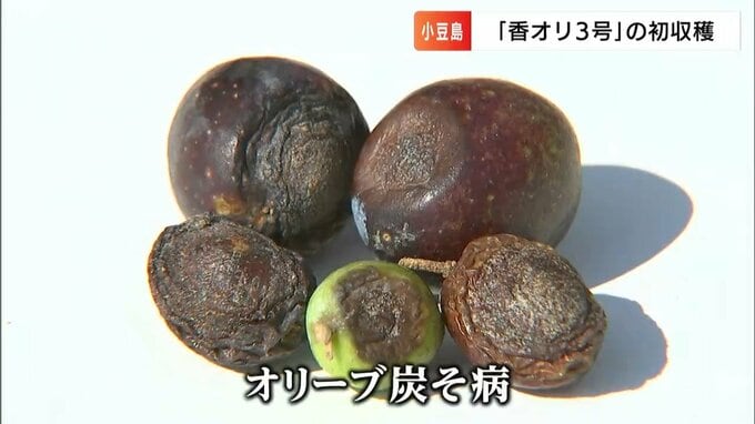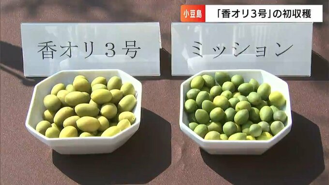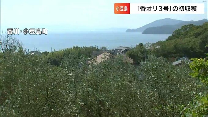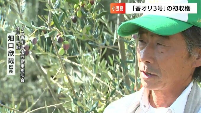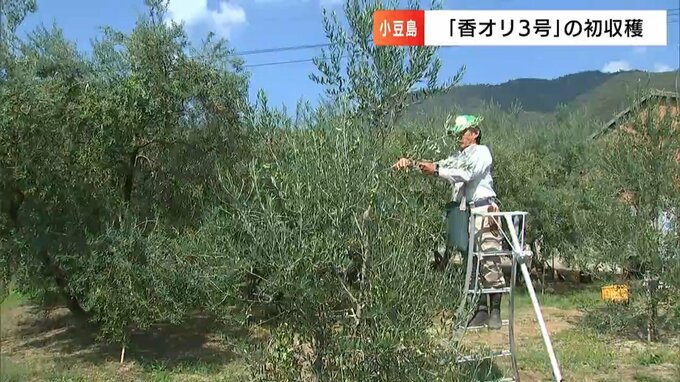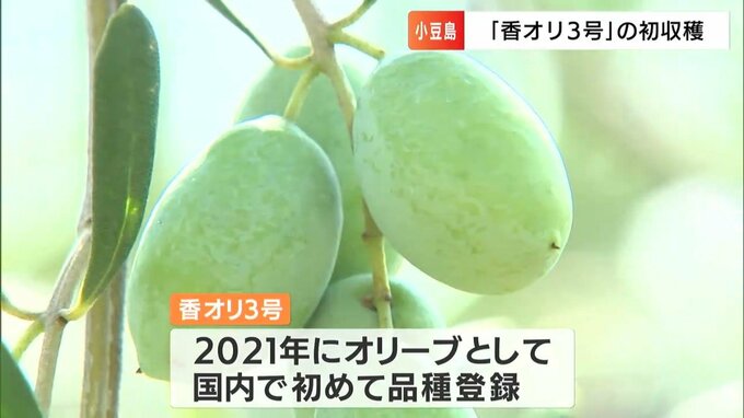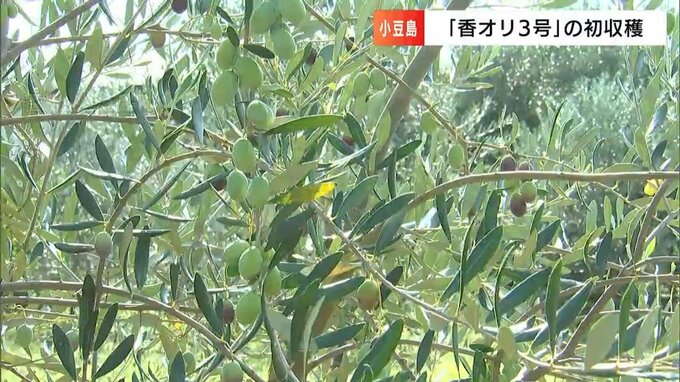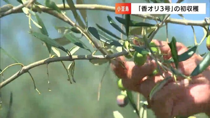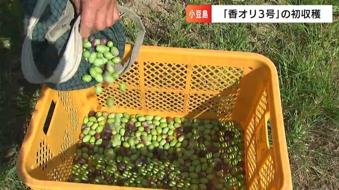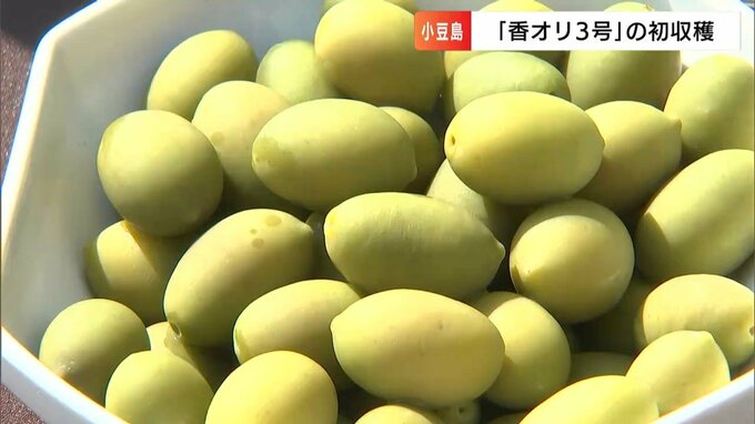 日本で初めて生まれたオリーブの品種「香オリ3号」の初収穫が小豆島で行われました。
