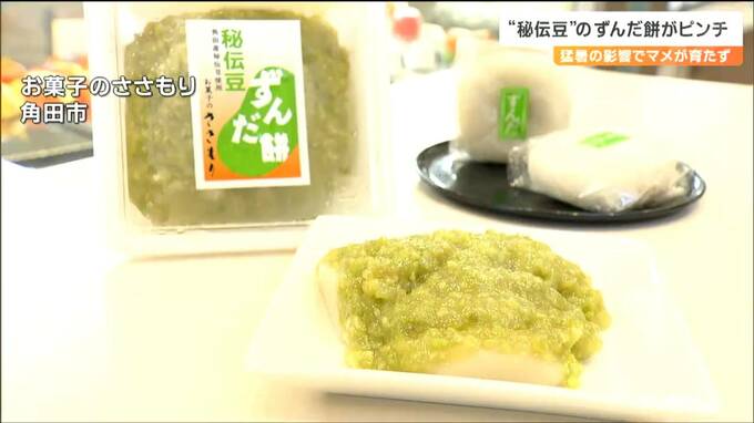 一方、こちらは地元菓子店の看板商品、秘伝豆を100%使った、ずんだもち冷凍で通年販売しています。