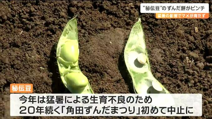 ところが、今年は猛暑による生育不良のため、20年続く恒例イベント「角田ずんだまつり」も初めて、中止になりました。富塚さんもまつりの実行委員長として自慢のマメを販売する予定でした。