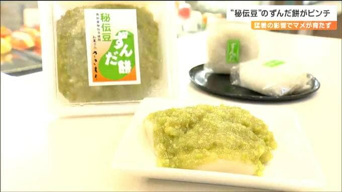 色鮮やかな緑、甘い香りが食欲を掻き立てる宮城を代表する和菓子が「ずんだ餅」です。このうち、角田市特産の枝豆「秘伝豆」を使用しているずんだ餅が、今年の猛暑でこの秘伝豆が育たず恒例の販売イベントが中止に…