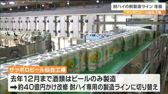 仙台工場では、去年12月まで酒類はビールを製造してきましたが、およそ40億円かけて改修し、酎ハイ専用の製造ラインに切り替えました。酎ハイの市場は多様化する消費者のニーズを背景にここ10年でおよそ2倍に成長しています。