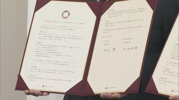 青森テレビは持続可能な開発目標=SDGsの実現に向けて、新たに2つの町とパートナーシップ協定を締結しました。16日午前、鰺ヶ沢町役場役場で行われた協定締結式では青森テレビの小山内悟社長と鰺ヶ沢町の平田衛町長…