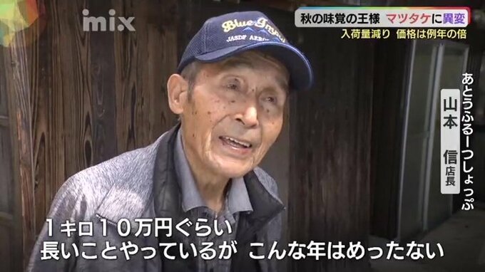 「今年は平年よりだいぶ高いですよ。倍近くする。1キロ10万円ぐらいする。長いことやるが、こんな年はめったないね」