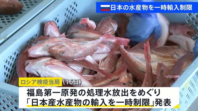 東京電力・福島第一原発の処理水の海洋放出をめぐり、ロシアの検疫当局は、日本産水産物の輸入を一時制限すると発表しました。すでに禁輸に踏み切った中国と足並みを揃えた形です。ロシア検疫当局は16日、声明を発…