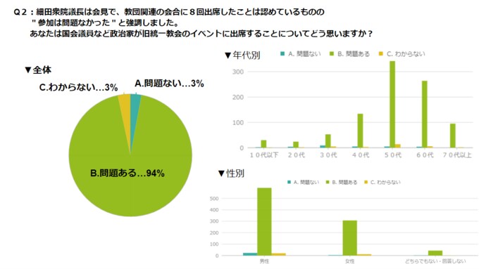▽国会議員など政治家が旧統一教会のイベントに出席することについて聞いたところ、9割以上の人が「問題がある」と回答しました。
