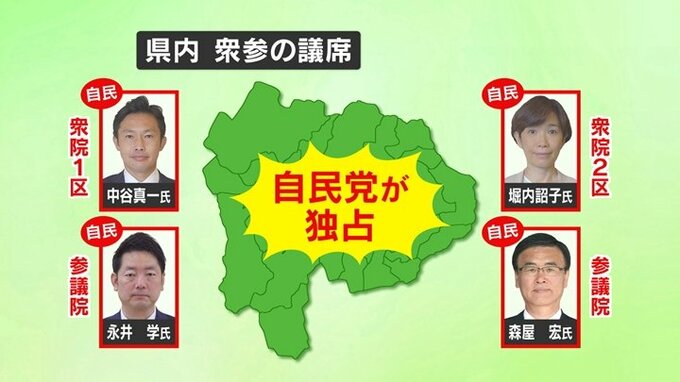 2021年の衆院選で山梨1区を中谷真一さんが、2区を堀内詔子さんが制し、25年ぶりに県内小選挙区の議席を独占した自民党。