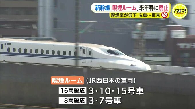 JR東海道・山陽新幹線の車両にある喫煙ルームが、来年春で無くなることになりました。JR西日本が所有する新幹線の車両には、16両編成は3号車と15号車(普通車)、10号車(グリーン車)。8両編成の列車では、3号車と…