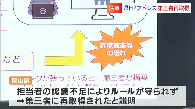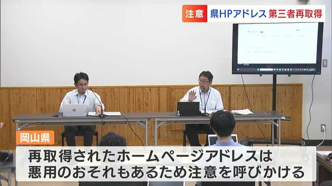 岡山県では今後、再取得されたアドレスが悪用される恐れもあるため、アクセスしないよう注意を呼びかけています。