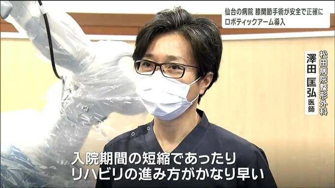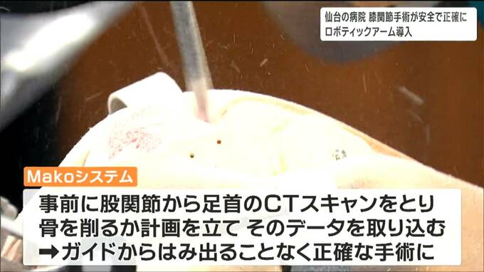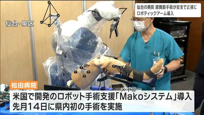仙台市泉区の松田病院では、アメリカで開発されたロボット手術支援システム「Makoシステム」を導入し、9月14日に宮城県内初の手術を行いました。