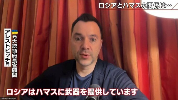 番組では今年1月までウクライナのゼレンスキー大統領の側近中の側近だった人物に話を聞いた。彼はロシアがハマスに武器の提供をしていると断言する。