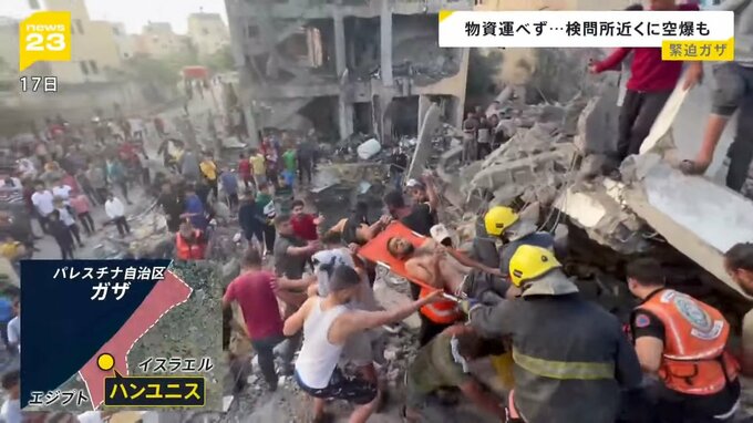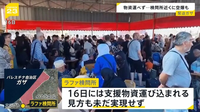 17日未明には、援助物資を積んだ複数のトラックがエジプトを出発しましたが、ラファでは空爆とみられる爆発も起きていて、検問所が開くめどは立っていないと言います。